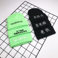 老铁没毛病新款冬季刺绣没洗头针织帽男创意搞怪送诚实人绿帽子潮