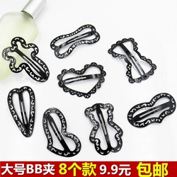 8个装 韩版边夹刘海发夹韩国BB夹简约发卡头饰品黑色金属大号夹子