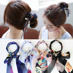 韩国头饰 布艺蝴蝶结飘带发圈 波西米亚淑女碎花发带头巾头饰