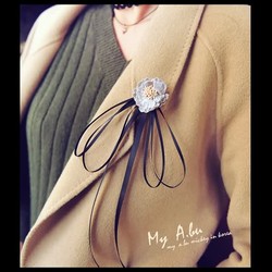 胸针日韩2017新品学院风毛呢花朵 飘带胸花别针 外套服装配饰