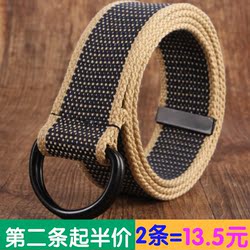 男士式双环扣帆布皮带 青少年学生牛皮帆布腰带 男 编织裤带