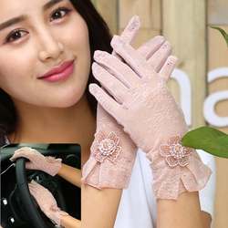春夏季防晒手套女夏天薄短款防紫外线骑开车防滑蕾丝冰丝触屏手套