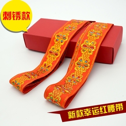 本命年新年结婚新娘红腰带民族风百福烫金刺绣红腰绳男女款大红色