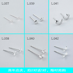 s925纯银耳钉星星月亮太阳耳饰光面批花防过敏耳针耳棒镀铂金包邮