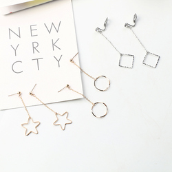 韩版时尚长款流苏耳钉星星耳夹无耳洞个性女款镂空链条镶钻耳饰品