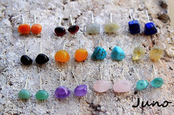纯手工 天然原石耳钉 特色 纯铜耳针 紫水晶耳钉 石头耳钉 包邮
