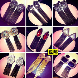 潮流时尚大咖晚宴水钻耳环超长款气质流苏夸张耳坠女式时尚装饰品