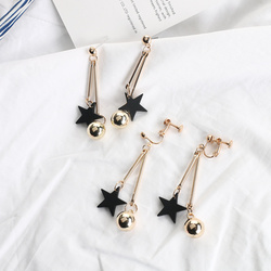 耳夹无耳洞女韩版气质复古黑色长款球球假耳钉夹耳环耳坠双层耳饰