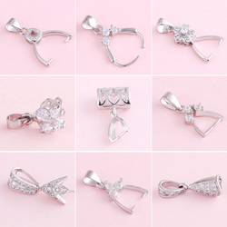 泰银S925银夹扣/奥地利水晶吊坠扣头 手工DIY配件 立体镶钻吊坠夹