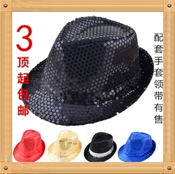 儿童爵士帽子韩版英伦男女小礼帽幼儿表演帽演出舞蹈帽黑色亮片帽