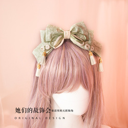 和风lolita发饰 超大蝴蝶结头饰 嫩绿色流苏原创发箍kc手链发夹