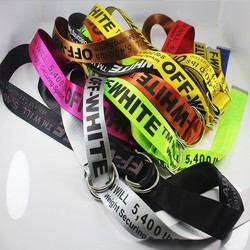 OFF-WHITE黄色刺绣韩版百搭装饰宽腰带 男女学生时尚皮带双环帆布