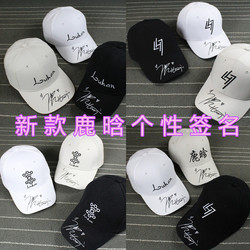 韩国exo白色刺绣棒球帽鹿晗同款签名帽子女士鸭舌帽男生休闲帽潮