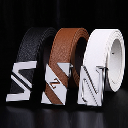 皮带男士式青年商务休闲简约韩版潮流字母平滑扣女腰带软牛仔裤带
