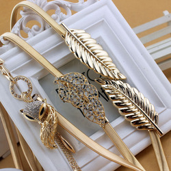 女士金属叶子对扣腰带腰链装饰弹力松紧细腰封女裙子百搭腰带包邮