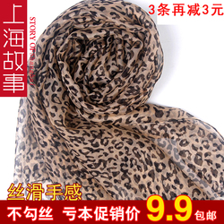 上海故事丝巾春秋2017新款女士长款沙滩巾夏百搭韩版纱巾豹纹围巾