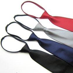 10cm宽男士正装商务拉链领带一易拉得懒人领带黑酒红藏青蓝色条纹