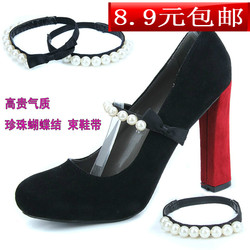 满8.9包邮束鞋带高跟鞋皮鞋不跟脚鞋饰品/珍珠款绕脚脖子鞋绑带