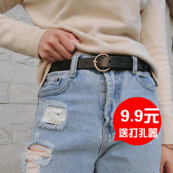 黑色韩版细腰带男女情侣简约百搭休闲针扣圆环学生装饰牛仔裤皮带