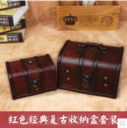 欧式仿古软装木盒子 复古手工木质首饰珠宝收纳盒藏宝盒百宝箱