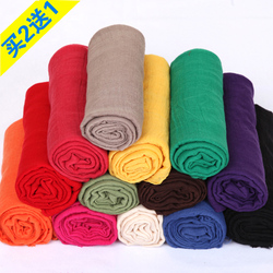 春秋棉麻围巾女纯色披肩冬民族风长款丝巾大红防晒亚麻纱巾夏季