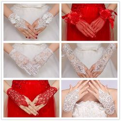 结婚新娘蕾丝婚纱手套婚礼红色白色无指露指短款手套配饰婚庆用品