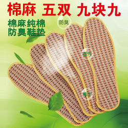 【五双装】棉麻鞋垫 亚麻竹炭除臭鞋垫吸汗男女防臭透气运动鞋垫