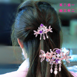 韩版包邮女发饰发夹头饰横夹盘发蝴蝶螃蟹抓水钻发卡饰品抓夹中号