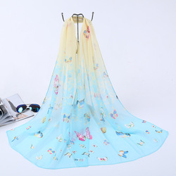 韩版雪纺长巾丝巾女士长款百搭蝴蝶纱巾大花春秋雪纺围巾小丝巾女