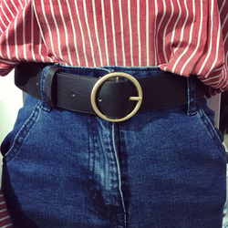韩国皮带潮流百搭简约圆形连衣裙裤带金属皮带女式细腰带针扣皮带