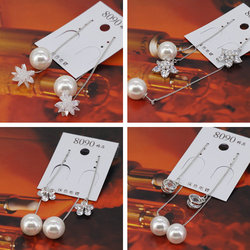 锆石冰花耳线韩版长款珍珠吊坠 时尚气质耳饰品