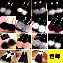 复古流苏水钻珍珠耳环兔毛球穗子耳坠女式时尚装饰品长款夸张耳线