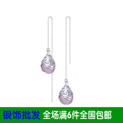 925纯银耳线 许愿池耳线 流苏耳线 长款许愿池耳线 镂空花耳线粉