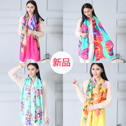 韩版春秋冬季保暖棉麻围巾女士超大印花百搭丝巾披肩两用韩国纱巾