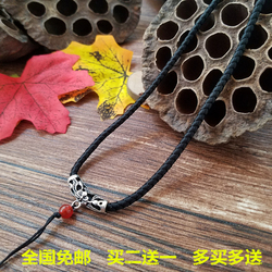 藏银手工编织黑红绳子挂坠翡翠玉坠玉佩金银玉佛项链吊坠挂绳男女