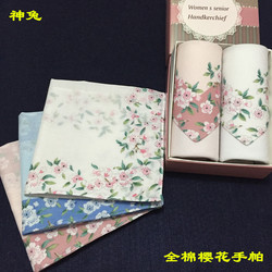 (满5条包邮)神兔樱花女士手帕 纯棉手绢吸汗巾薄软手巾 口袋巾