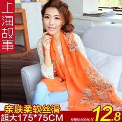 上海故事丝巾超大长款春秋防晒披肩沙滩巾冬季围巾女两用雪纺纱巾