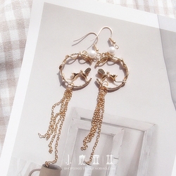 古典古风民族风珍珠小鸟长款链条耳环女耳坠耳饰无耳洞耳夹饰品