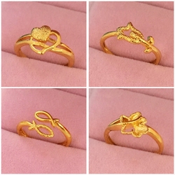 包邮简约个性桃心女戒子欧币首饰越南沙金活口戒指镀金小鱼戒子