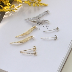 韩国清新刘海夹 金属树叶发夹 边夹星星月亮一字夹对夹 珍珠发卡