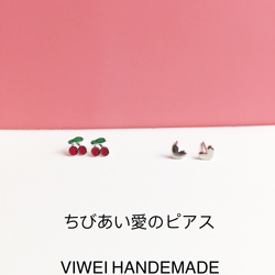 S925银 软妹 mini size迷你小樱桃小爱心心形耳钉耳饰一对