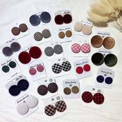 包邮韩国个性英伦风千鸟格布艺丝绒圆形纽扣格子耳环耳钉耳饰品女
