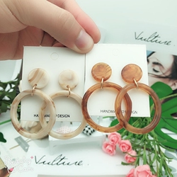 2件包邮mali安娜同款耳环韩国气质简约百搭醋酸圆环形几何镂空女