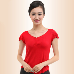 特价清仓2017广场舞服装新款上衣新款女短袖拉丁练习服多色莫代尔