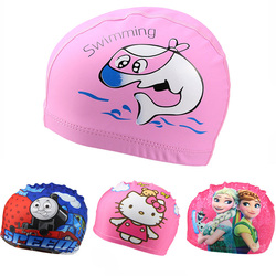 儿童泳帽PU涂层防水公主卡通游泳帽男童女童通用宝宝护耳泳帽套装