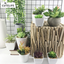 仿真多肉小盆栽微景观装饰摆件餐厅绿叶塑料植物小摆件3盆包邮