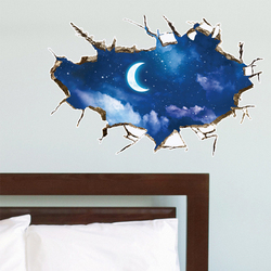 3d立体整张贴画墙贴卧室个性创意房顶装饰壁纸自粘风景画月亮天空