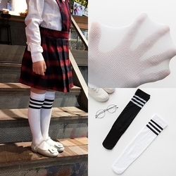 女童长袜大童宝宝中筒袜纯棉条纹儿童长筒袜女夏校服过膝男童袜子