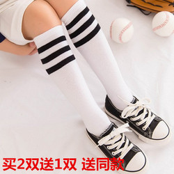 儿童爵士舞中筒袜纯棉足球袜黑色白条纯棉过膝袜长袜子街舞袜子