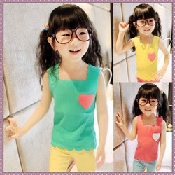 2017夏装 韩版女童爱心波浪花边方领 全棉螺纹背心 儿童吊带t恤